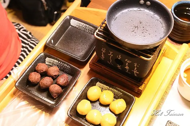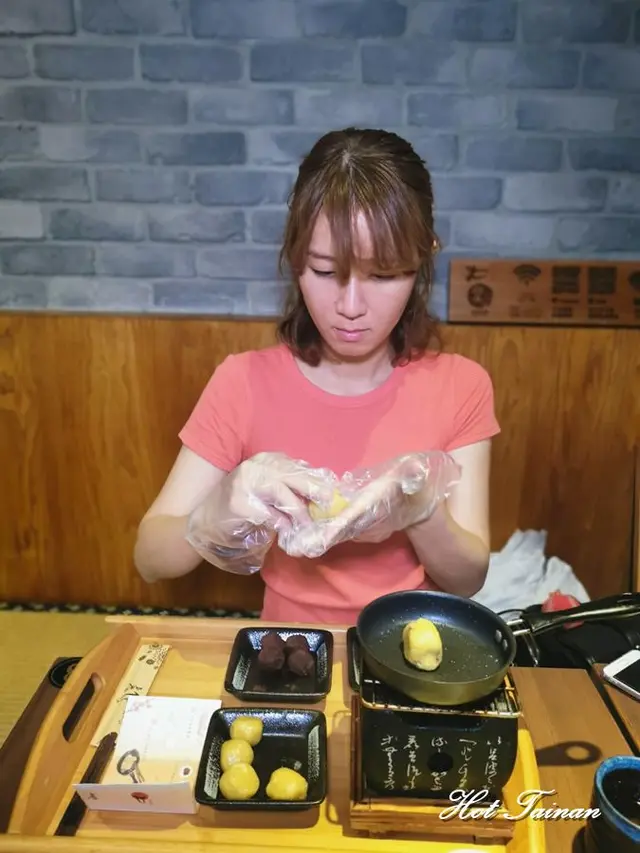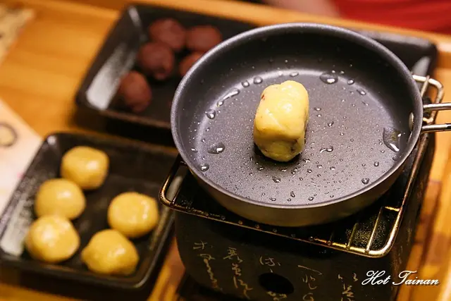 有趣的方塊燒體驗好適合親子一起玩,餐點送到後服務人員會先解說及示範製作過程,將搓好的方塊燒捏成四方形,在入平底鍋煎烤,口感有點像台式綠豆沙,外酥內軟的口感很適合飯後甜點哦~