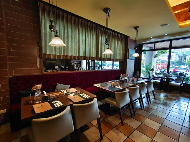 ▼牆上的歐洲農園村莊壁畫,配上暖黃色燈光、木樑天花板,營造出舒適溫馨的用餐氛圍