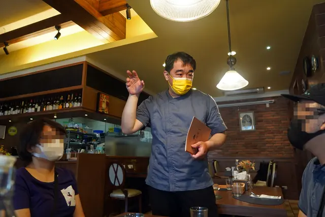 ▼雖然我來過,但其他人是第一次來暖心時光,主廚很貼心幫我們介紹菜色。暖心時光的郭主廚曾任於台南經典義法餐廳「那個時代」主廚,那個時代可是培養出不少義法餐廳的中流砥柱,可見郭主廚的深厚廚藝了吧