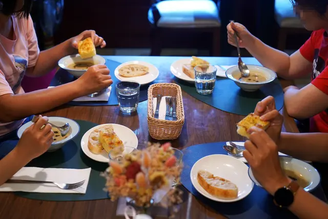 服務人員端來飲品後,迫不急待先來乾一杯,清爽沁涼的氣泡飲讓原先歡樂的氛圍更加熱鬧,大家放慢進食速度,開始你一言我一語討論音樂發表會的內容,再配上美味可口的餐點