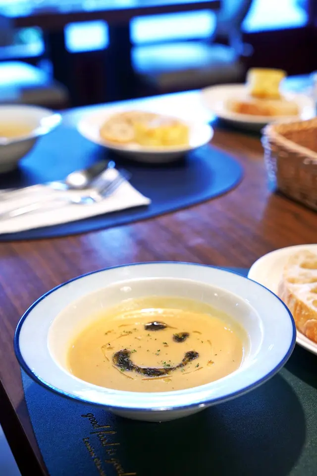 剛好Adora這盤濃湯的松露醬畫出一道笑臉,大家紛紛說Adora不愧是受鍾愛的人(名字涵意),之後會很幸運哦~有點像茶梗站起來的感覺XD