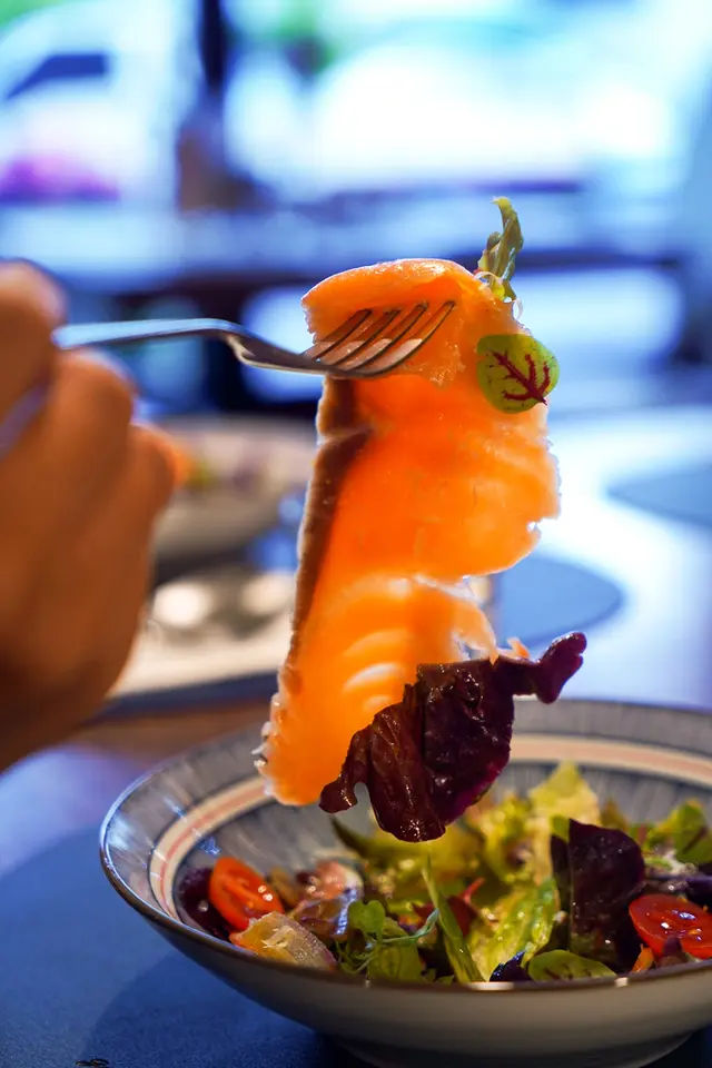 ▼主廚今日前菜:煙燻鮭魚沙拉
