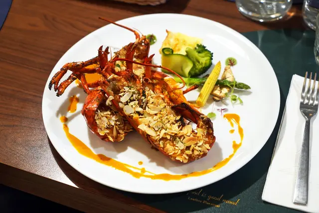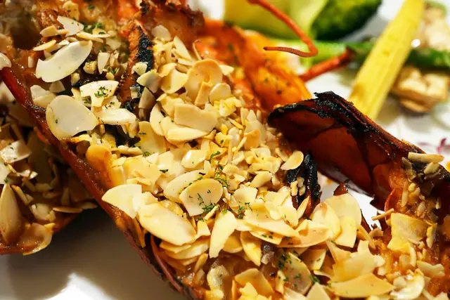 ▼煎烤杏仁波士頓龍蝦佐咖哩海膽醬汁