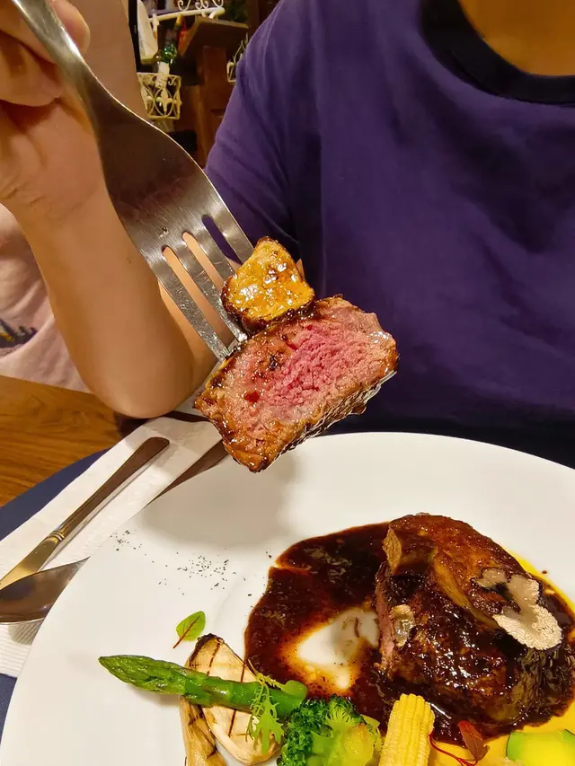 嚮往法國的Diana,看到菜單上有這道經典法國牛排菜,直說一定要嘗試看看。據說羅西尼牛排是歌劇作曲家羅西尼,半夜肚子餓而創造出至今仍為經典的牛排菜,果然食慾的力量無窮啊!