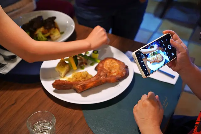 身為一個戰斧豬排,最重要的當然是尺寸啊!單拍在盤子上恐怕不能讓你們感受到它的巨大,如果是下面這張照片呢?