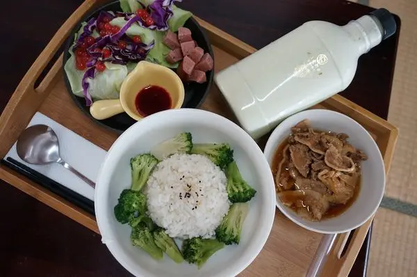 會附沙拉、主餐、白飯、及茶,如果想換其他飲品可以折30元。