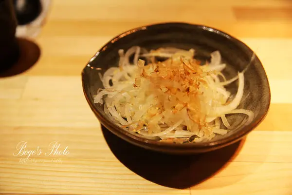 這是招待的小菜,大量的果醋放置盤底中,配上柴魚片一起吃,洋蔥變得更鮮甜而且不會嗆辣。