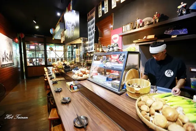這間爐端燒就開在東區裕農路上,室內室外都附有座位區,不過熱血強烈建議如果要來吃,一定一定要坐店內!而且記得一定要坐在吧台前喔!如此一來你才能真正體會到什麼是純正日式的爐端燒!
