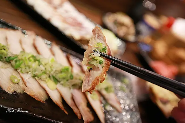 用松阪豬直接把上頭的蔥把起來再送入口中,用這樣的吃法會讓這一道吃起來更有層次,比起單獨放入口裡我更喜歡包著吃,細細品嚐就可以吃到松阪豬特有的口感和香氣,非常下酒好吃的一道。