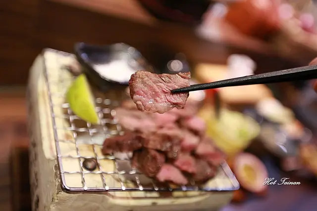碳烤究極牛小排,烤到大約七分熟的牛小排,中間部分那粉嫩粉嫩的實在讓人會不自覺的流下口水,店家很貼心的將每塊肉都切成可以直接就口吃的狀態,一小口一小口的品嚐那甜美的滋味,一旁也附上了天然鹽可以搭配使用著吃。