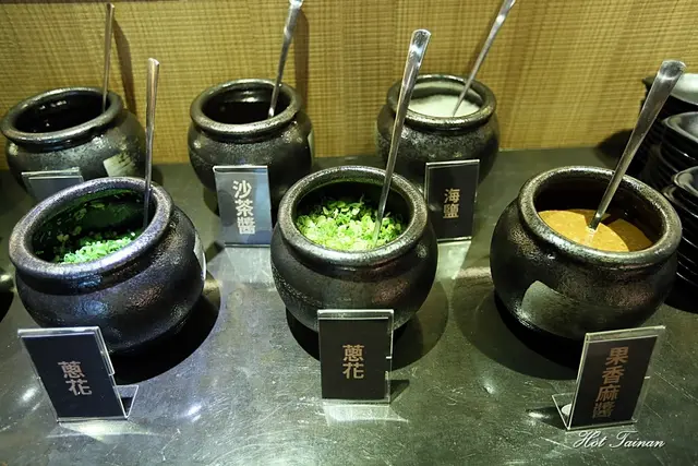醬料區,超多種的醬料任你使用,還有些是看都沒看的名稱呢,大家可以都挑選著用來試試看,熱血當天只有加了蔥來配著吃而已,就習慣吃原