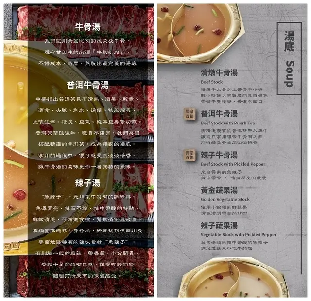 選擇了辣子湯和普洱牛骨湯兩款,可以做成鴛鴦鍋是沒問題的!