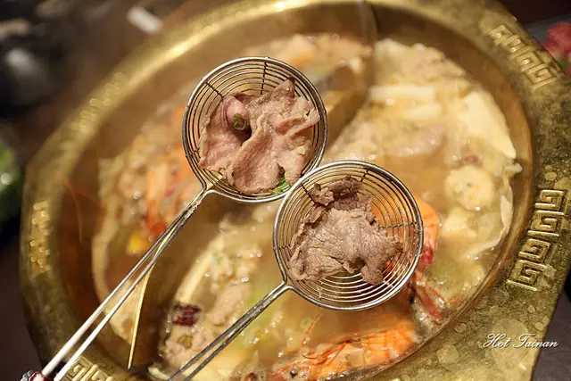 熟成牛肉處理的過程相當耗時耗費金錢,一般來說只有高等級的牛肉才有辦法製作,而且整個處理的過程中程需要牛肉內富含豐富且均勻分布的脂肪,在這些情形下,熟成牛肉的價格自然就會比較高了些,當然~他的風味也不容小覷,熱血以前有吃過熟成牛肉製作的牛排,當時的口感吃起來也是讓我很驚豔,這次台南可以吃到熟成牛火鍋豈能放過!!