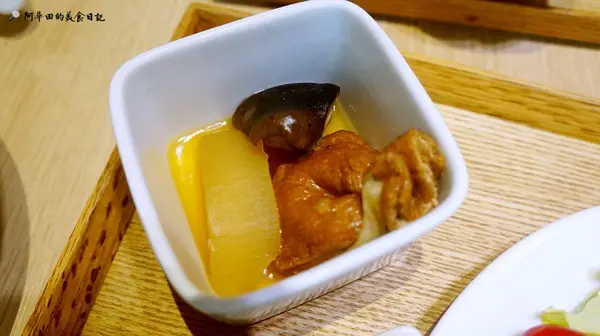 ▲定食的配菜關東煮有香菇、白蘿蔔、福袋