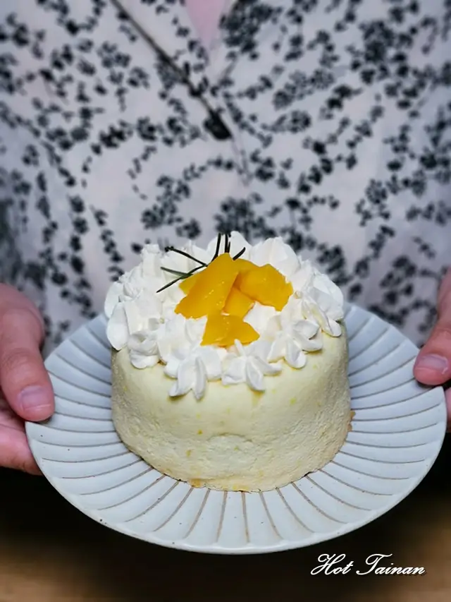沒有添加人工香料的戚風蛋糕,適合大小朋友食用,在這個化學香料使用過度的年代,是一抹清流!愛文金煌的相看兩不厭,造就了這一顆的美味。