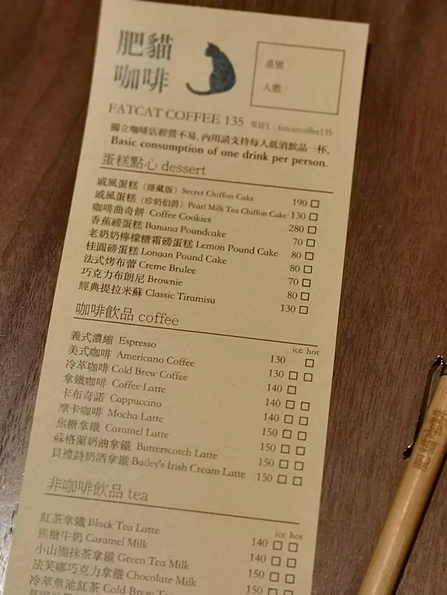 如果不想喝純茶類,肥貓咖啡這裡的咖啡系飲品選擇也很多,就看自己想喝點什麼吧~