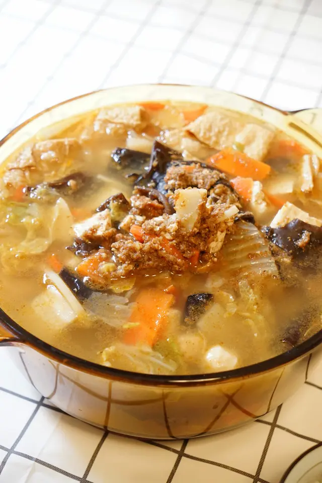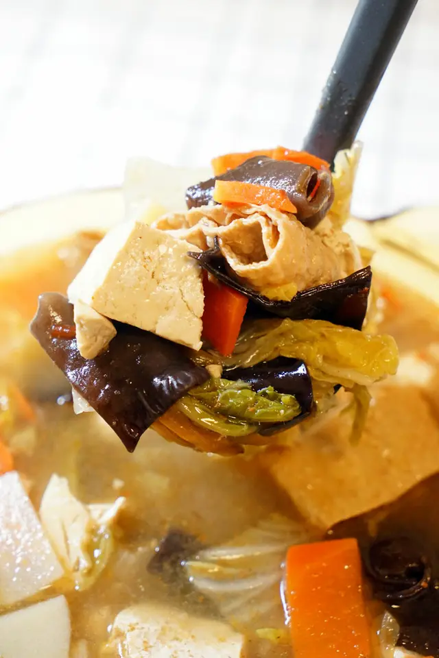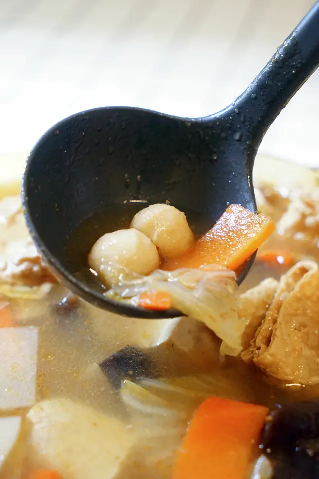 ▼配料大約有大白菜、豆皮、魚丸、紅蘿蔔、黑木耳、金針花、凍豆腐等等,都是蔬菜居多。