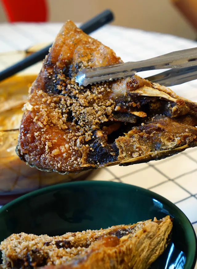 ▼魚頭的使用很大塊,口感超酥脆,但外皮有一點太堅硬,小孩和長輩吃可能比較困難。