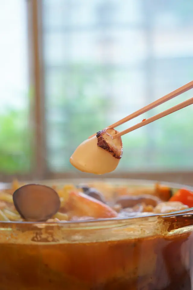 ▼海鮮的部分沒有因為煮後就縮水,花枝有著彈牙的Q度,邊嚼邊有新鮮口感爆發在嘴裡。魚餃內餡則是很扎實,餃皮帶點嚼勁,以及台南特有的手工魚冊,是由魚漿所製成,吃起來保留有滿滿的鮮味,我們一家都很愛!