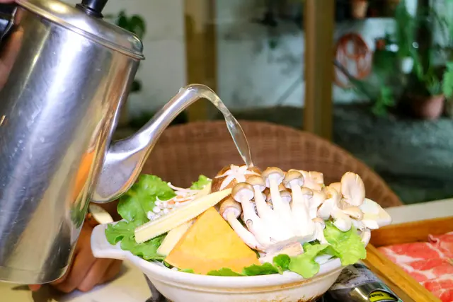 火鍋附有白飯及紅茶,沒有火鍋料全部都是健康的蔬菜跟菇類,有南瓜、小玉米、高麗菜、金針菇、香菇、秀珍菇等等,品嘗來自食材本身散發的純粹美味