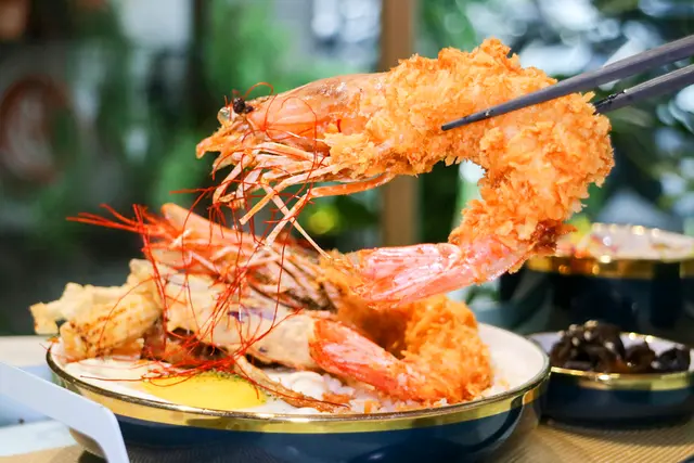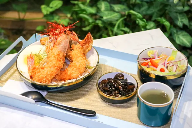 炸蝦定食是選用天使紅蝦,足足有兩大隻喔!知道很多懶人愛吃蝦卻不想剝蝦,早就把蝦殼都剝好了超貼心,讓我們可以很優雅地用餐