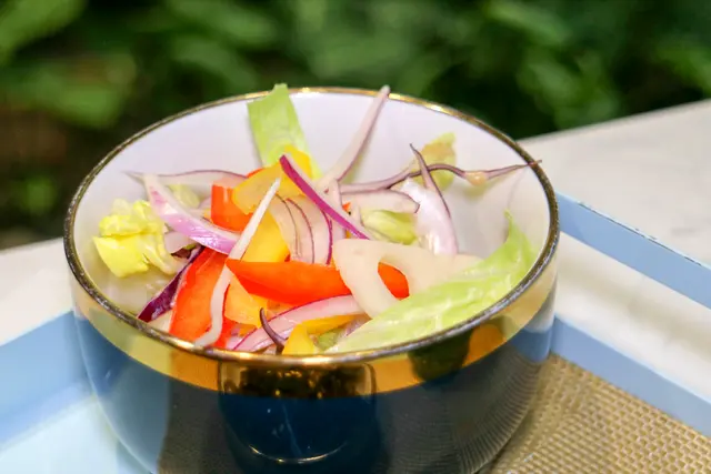 生菜沙拉佐胡麻和風醬,風味香醇,滿是芝麻香氣