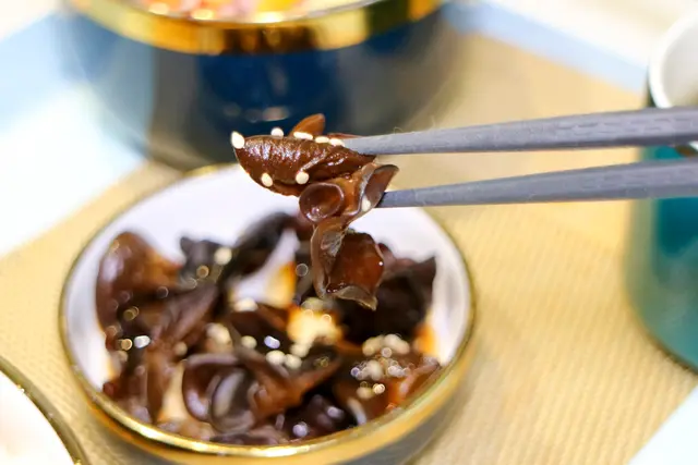 涼拌黑木耳有著淡淡的白醋酸味,爽脆Q彈很開胃