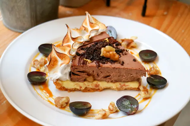 女孩兒聚餐當然少不了甜點囉!名字很唯美的阿爾卡雄夫人是巧克力布蕾喔!新鮮水果搭配布丁內餡、夏威夷果仁及巧克力慕斯,甜而不膩的口感很讓人驚豔