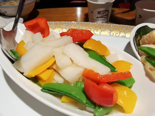 山藥搭配甜豆莢、彩椒,很清爽的鮮蔬料理