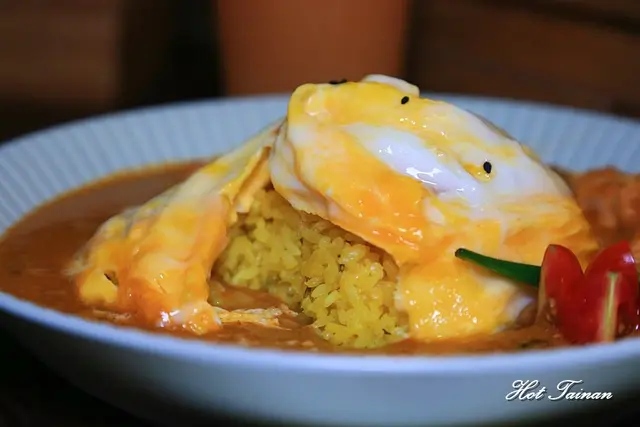 烏龜蛋是選用品質很好的雞蛋製作,都是以半熟的方式出餐,搭配薑黃飯實在很道味。