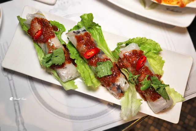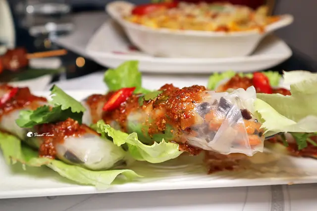 越式芙蓉春捲 - 春捲裡面包著蔬菜及米線,搭配上微辣的醬料後真是開胃,口感上我和瑋爸都超喜歡的。