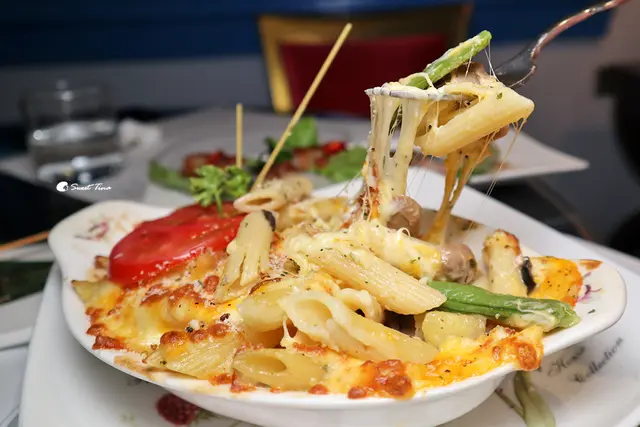 法式奶濃鮮菇焗烤筆管麵 - 裡頭除了份量十足的筆管麵,也加入了均衡的蔬菜及菇類,搭配上濃郁的起司後實在讓人滿足啊。