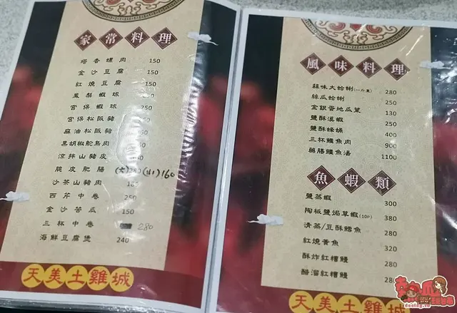 而天美土雞城選用的雞肉為跑山雞,使用的雞均為18-20週大小的土雞為準,光是雞肉料理就有多達10幾種,不管是乾吃或煮湯料理均有,除此之外還提供其他家常熱炒、山產及必點特色料理等平價料理供選擇,熱血建議假日來吃的朋友,可先預訂比較不會撲空哦~