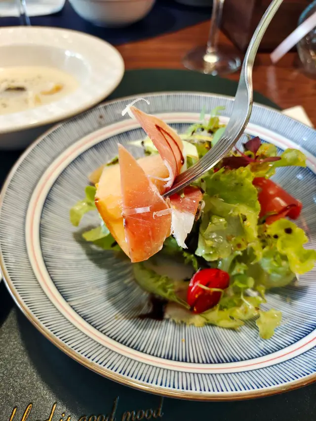 ▼主廚今日前菜:哈密瓜火腿沙拉