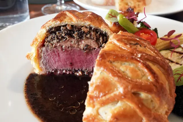 威靈頓牛排顧名思義就是威靈頓公爵最喜愛的料理,據說是英國威靈頓公爵滑鐵盧戰役凱旋歸來,他的御廚為了慶祝勝利,用酥皮包裹菲力牛排、鴨肝、松露等食材,讓威靈頓公爵一次就能享受到最愛的食物,結果深受公爵喜愛,流傳至今成為經典的歐洲料理