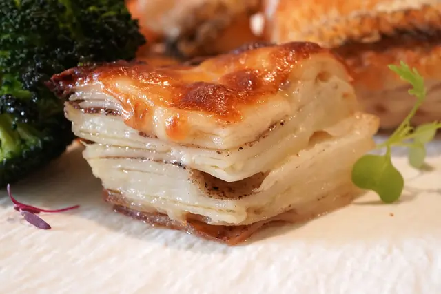 它是法國家常菜,由一層層馬鈴薯薄片疊起來,中間撒肉蔻粉,其實不說還有點點像在吃肉呢!主廚說因為這個比較費工,所以不一定每家義法餐廳都會有