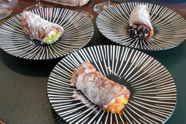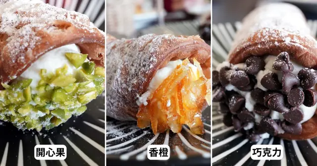 暖心時光自製的卡諾里卷,外層酥脆,內餡綿密但質地很輕盈,雖然吃完屑屑一定掉滿桌、內餡爆漿,但這就是吃卡諾里卷的樂趣呀~