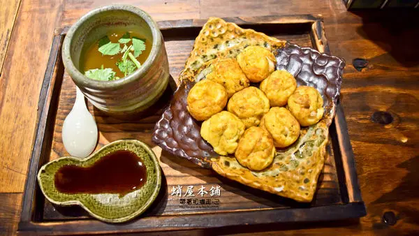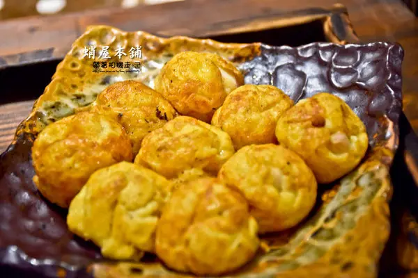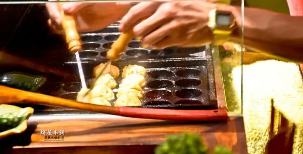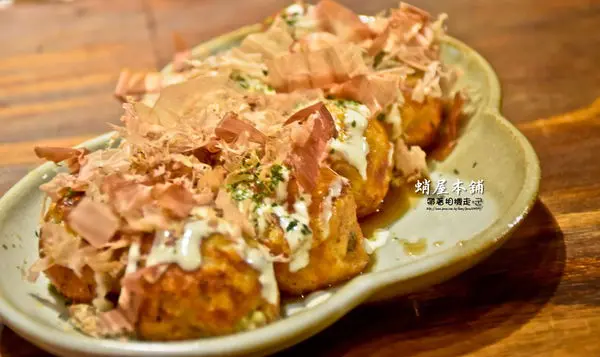 章魚燒淋上美乃滋還有醬料、海苔粉