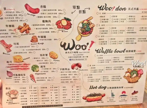 提供美式丼飯、熱狗餐、鬆餅碗餐..等
