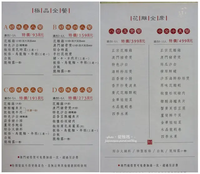 店家特別設計有:雙人、三人、四人、五人、六人…等套餐