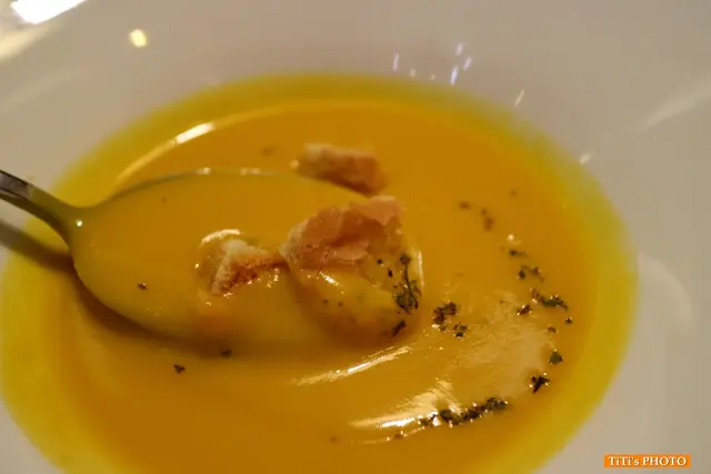 所以這道南瓜濃湯滑順濃稠的來源全來自於新鮮蔬菜熬煮而成