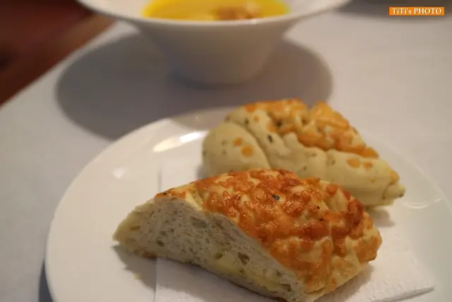 歐式麵包內餡吃得到小塊的乳酪,配上濃湯我真的很愛~