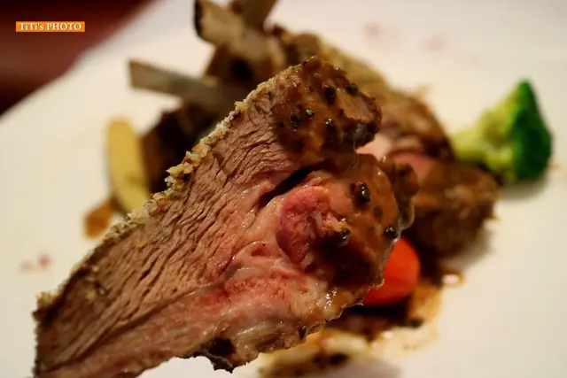 嫩煎羊小排點餐時就有告知大約是在8分熟左右,稍微看得到粉色紅肉