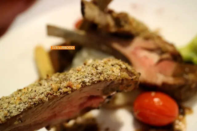 羊小排先煎過,再用多種香料堅果沾附在表面後再作一道烤的動作