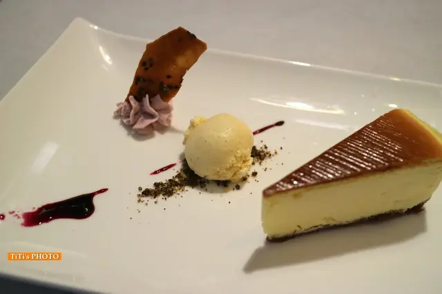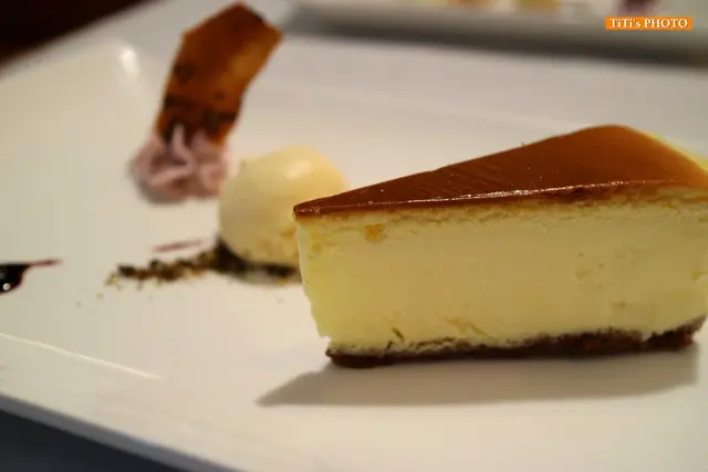 原味起士蛋糕綿密滑順,中間的香草冰淇淋一看就覺得好吃