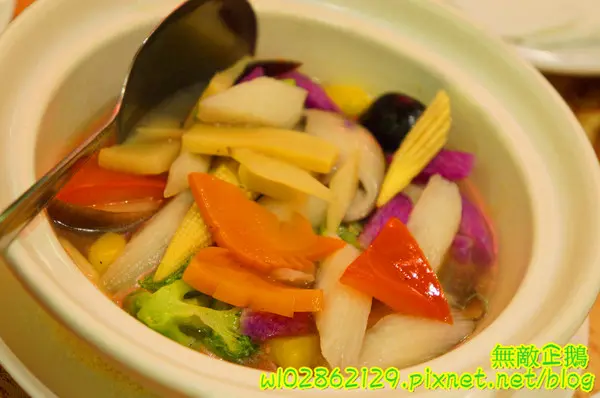 有紫色山藥和山藥.玉米筍.花椰菜.甜椒.紅蘿蔔.香菇等~