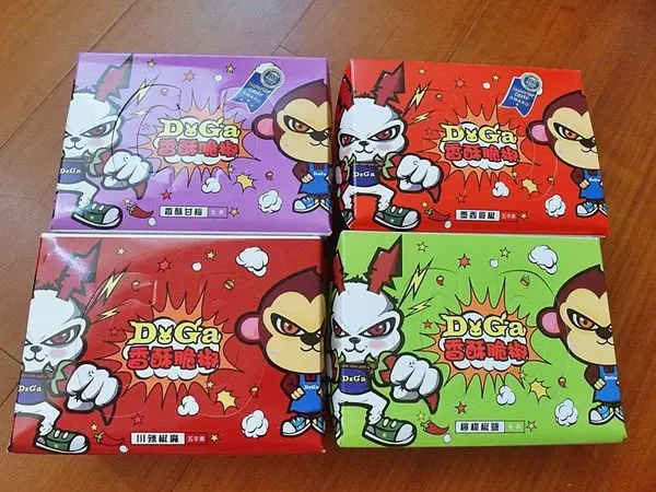 外盒的吉祥物很活潑童趣 每種口味也都用不同顏色來區分