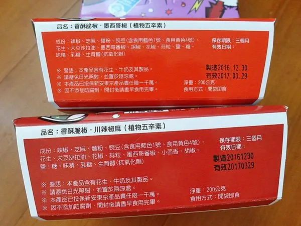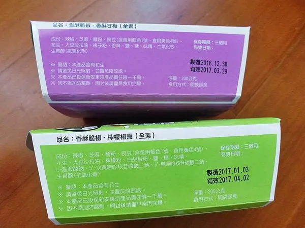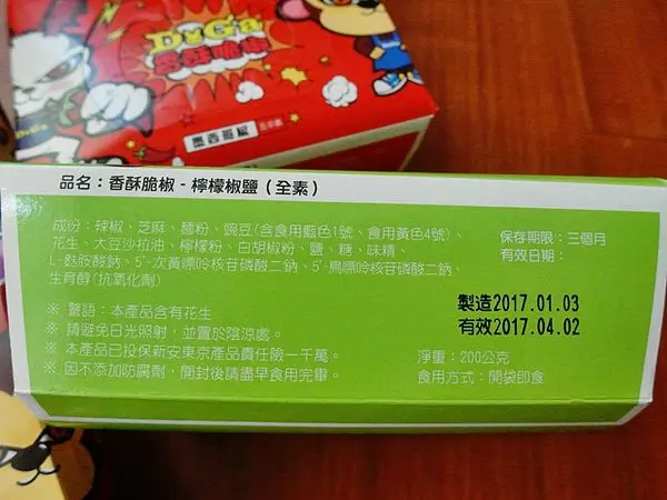 盒子旁邊印有清楚的成分、製造日期、有效期限還有注意事項