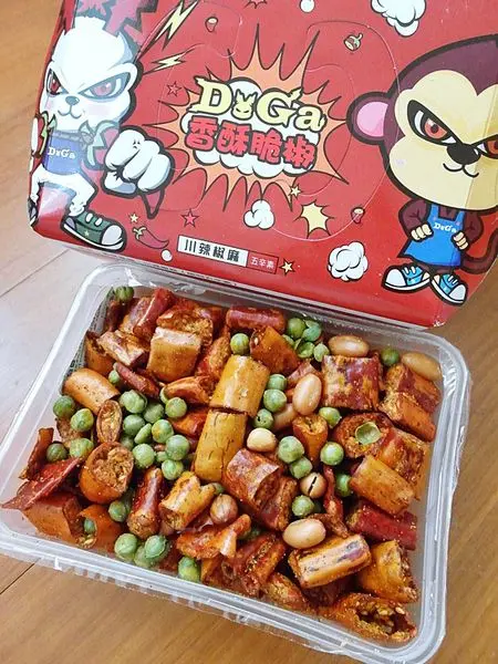 吃起來香辣酥脆 平常一打開當零嘴配電視吃 或者當下酒點心也很適合