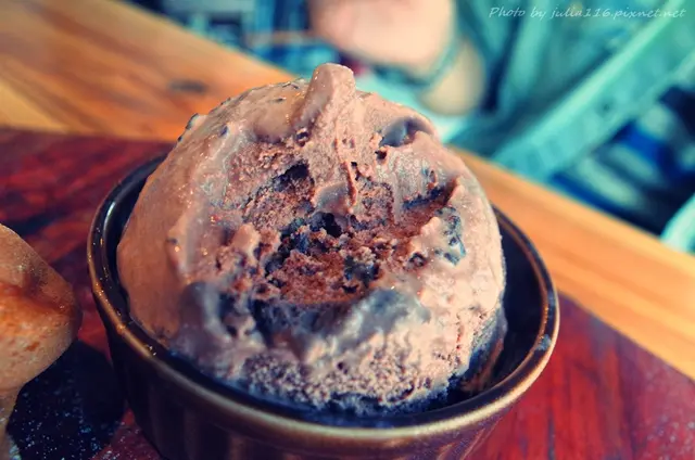 一旁巧克力冰淇淋吃得到巧克力豆與脆片,口感細緻香醇,而且是我最喜歡的苦甜口味